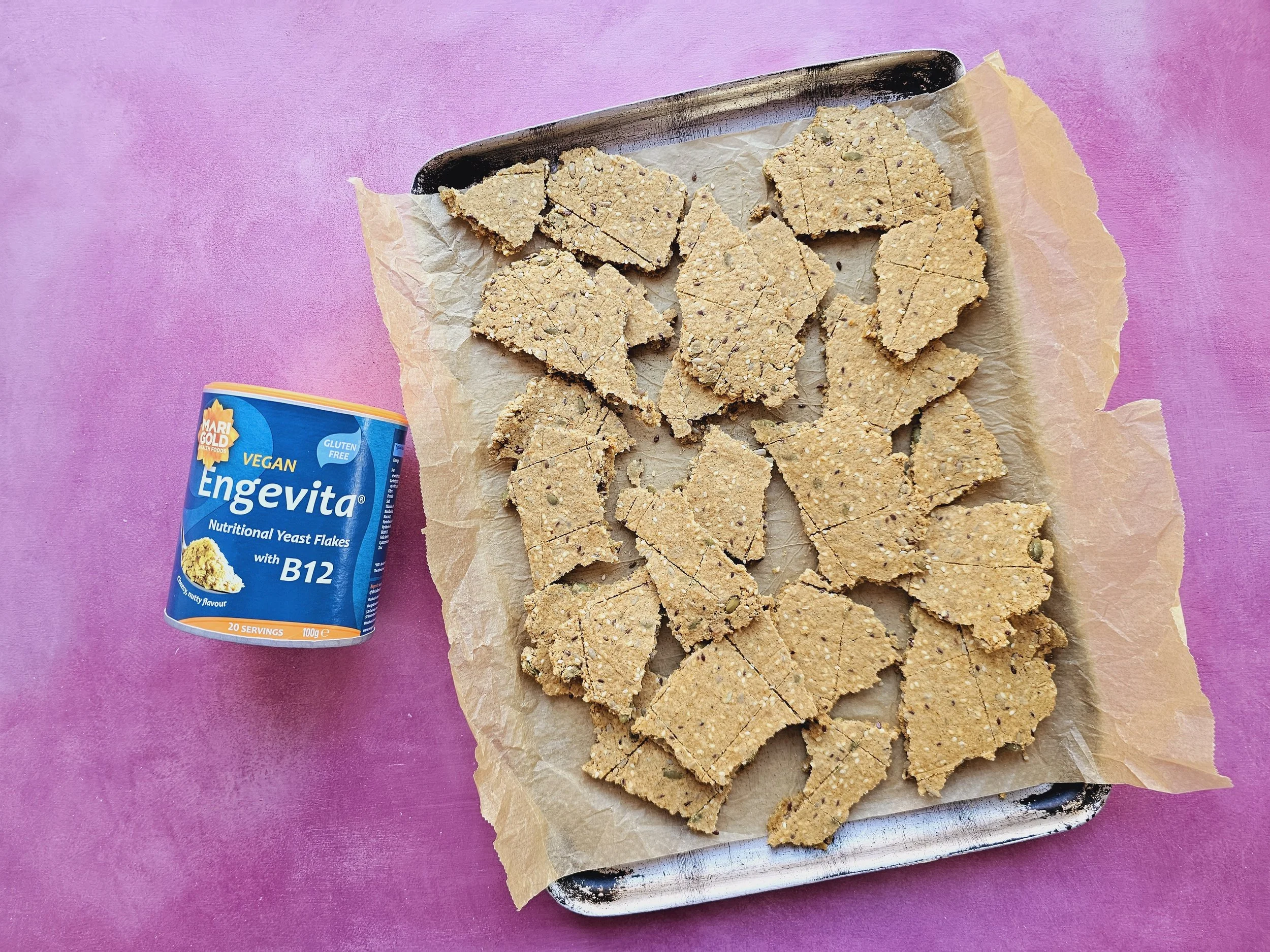 Here’s a tasty, crunchy nooch crispbread recipe — savoury, cheezy, and perfect for snacking or dipping.